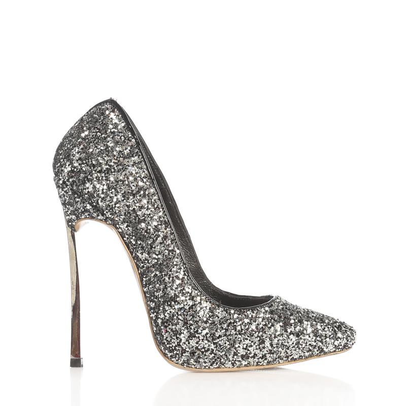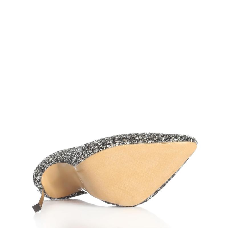 Antrasit Gümüş Simli Çelik Topuk Sivri Burun Ayakkabı(326)