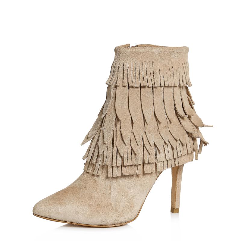 Bej Süet Püsküllü Bot(bot-127)
