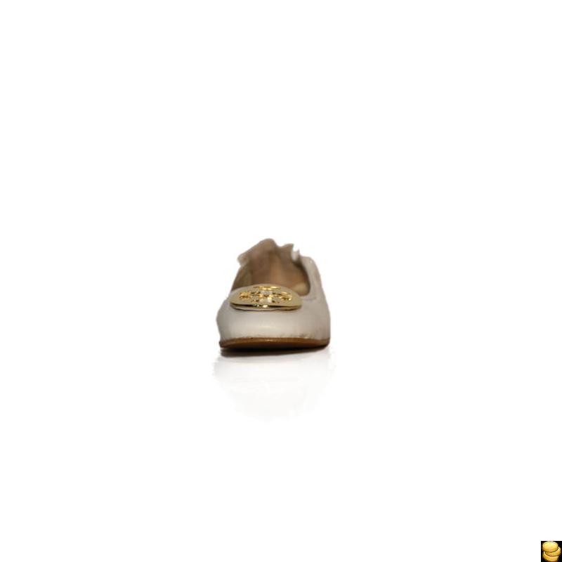 Beyaz Deri Arkası Lastikli Önü Tokalı Babet