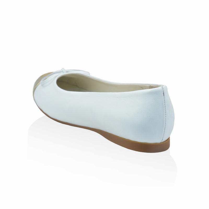 Beyaz Deri & Dore Rugan Önü Fiyonklu Maskaretli Babet