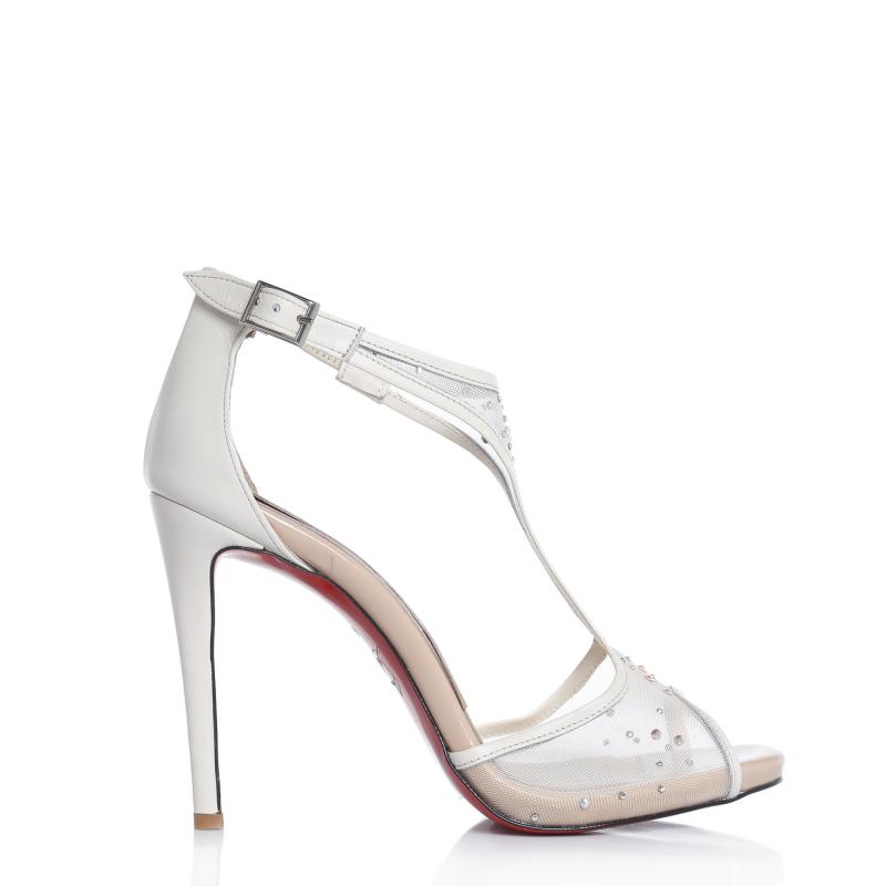 Beyaz Deri Taşlı Fileli Yandan Tokalı Mabeyn Ayakkabı(a-348)