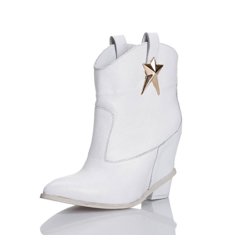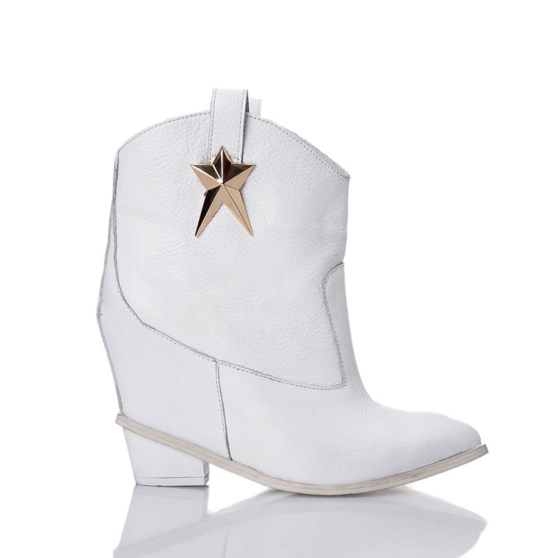 Beyaz Deri Yıldız Tokalı Dolgu Topuk Bot