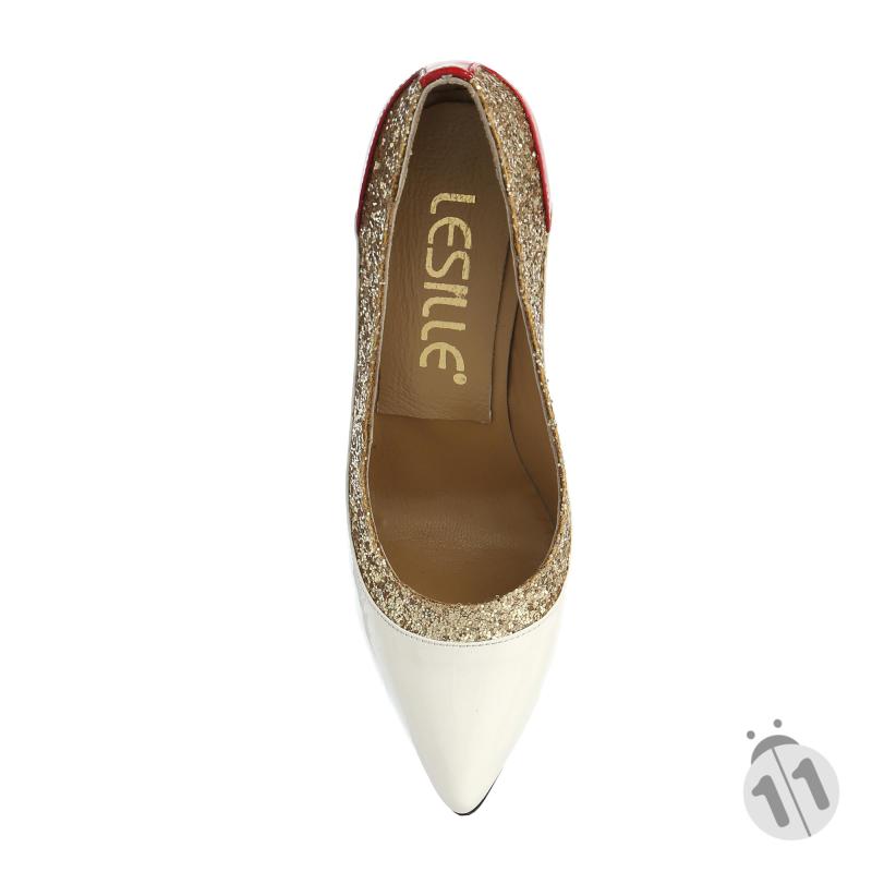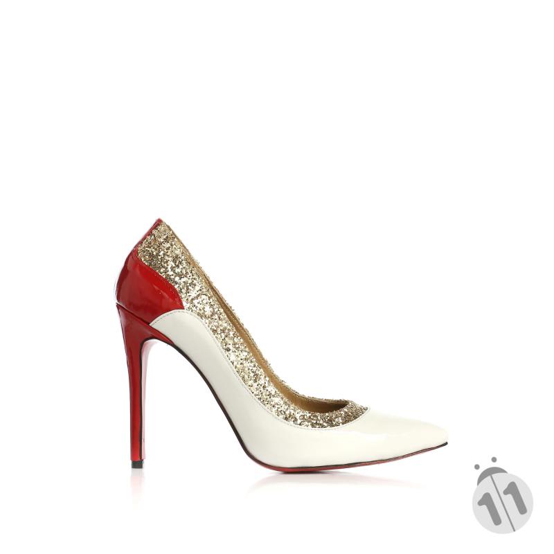 Beyaz & Kırmızı Rugan Dore Simli Stiletto Ayakkabı(a-493)