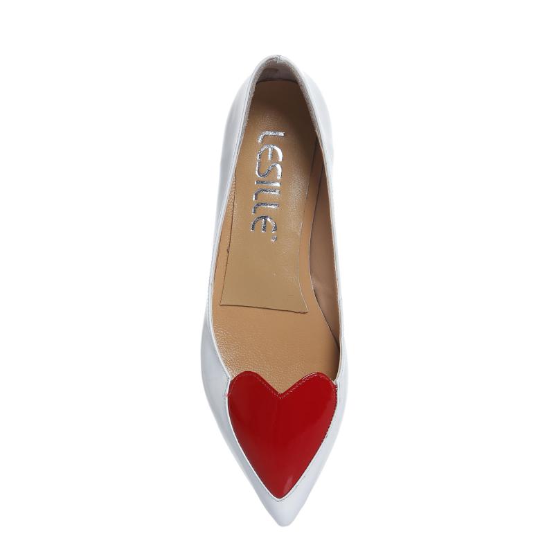 Beyaz & Kırmızı Rugan Kalpli Babet(b-28)