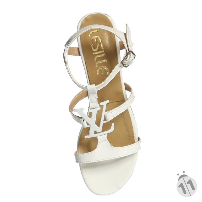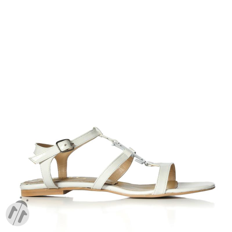 Beyaz Rugan LV Tokalı Sandalet