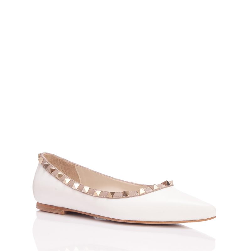 Beyaz & Vizon Deri Pimli Biyeli Babet(b-22)