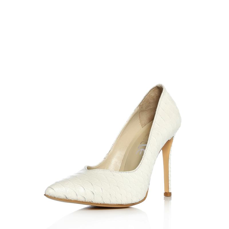 Beyaz Yılan Baskılı Deri V Kesim Stiletto Ayakkabı(A-105)
