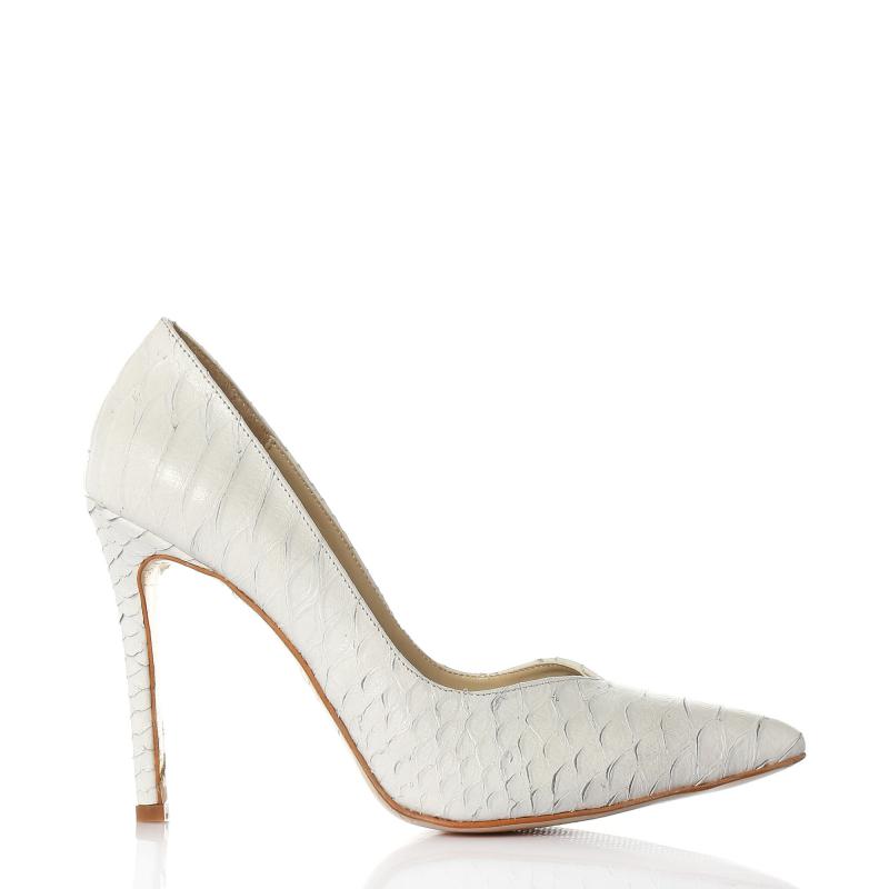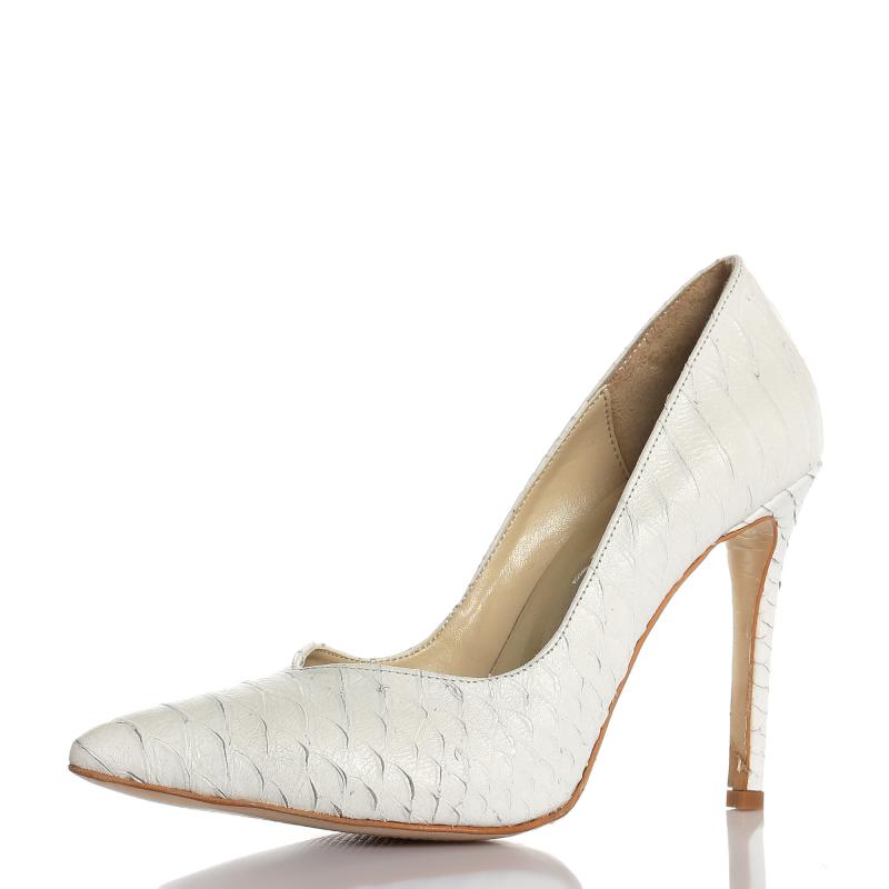 Beyaz Yılan Baskılı V Kesim Stiletto Ayakkabı
