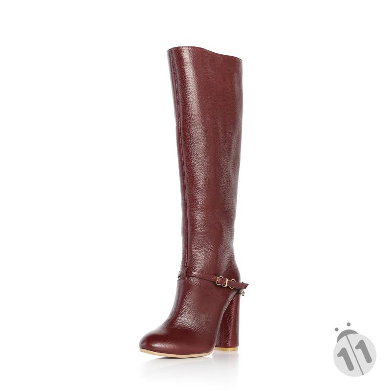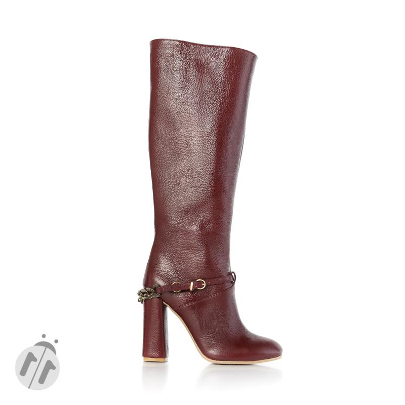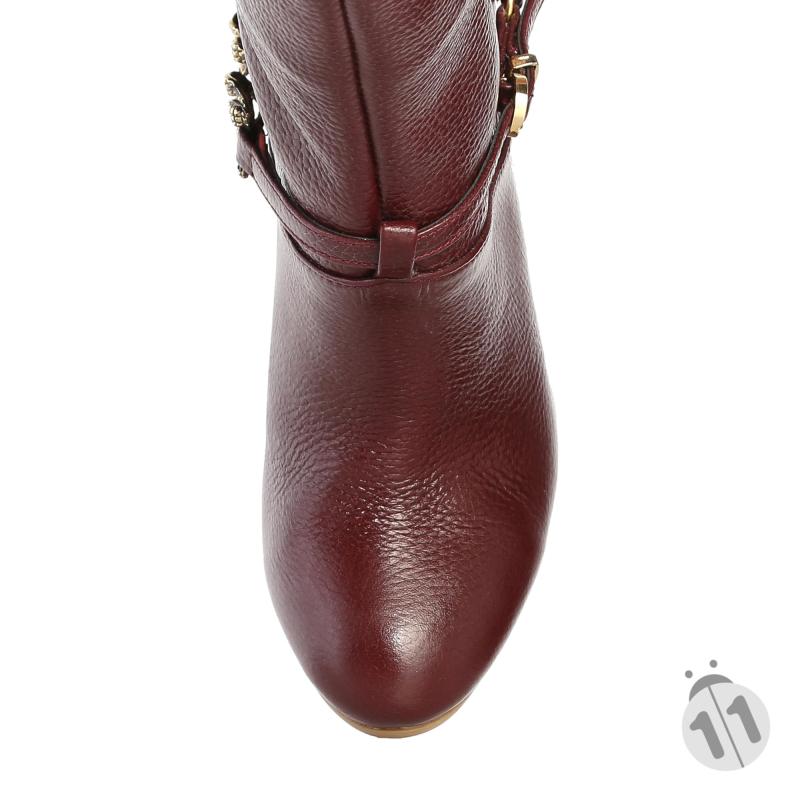 Bordo Floter Deri Yandan Zincir Tokalı Çizme(c-64)
