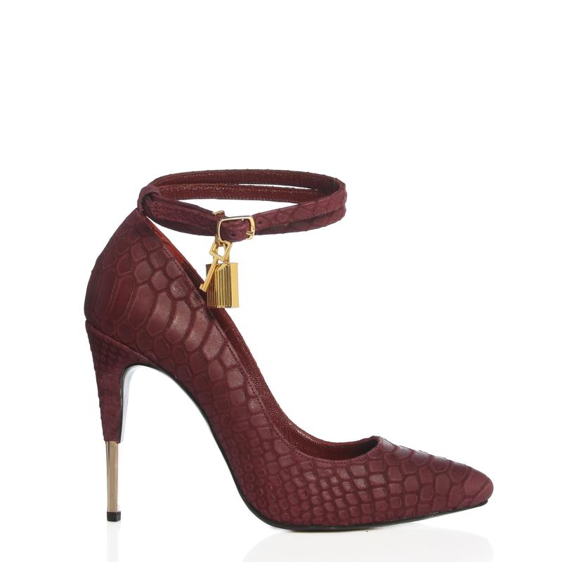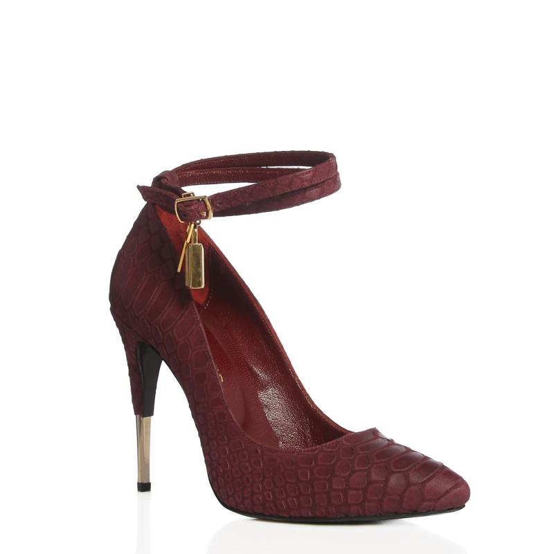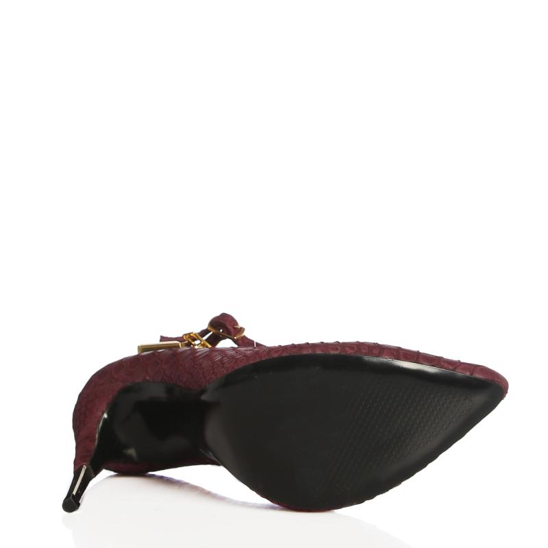 Bordo Krokodil Deri Kilit Tokalı Galvaniz Topuklu Ayakkabı(a-198tt)