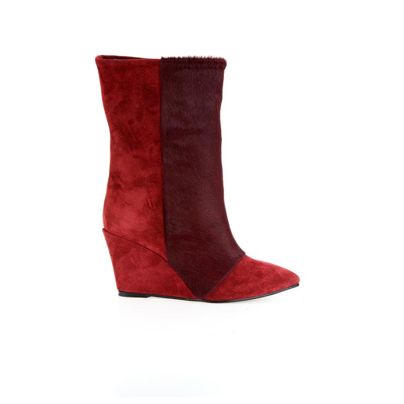 Bordo Süet & Bordo Tay Derisi Dolgu Topuk Bot