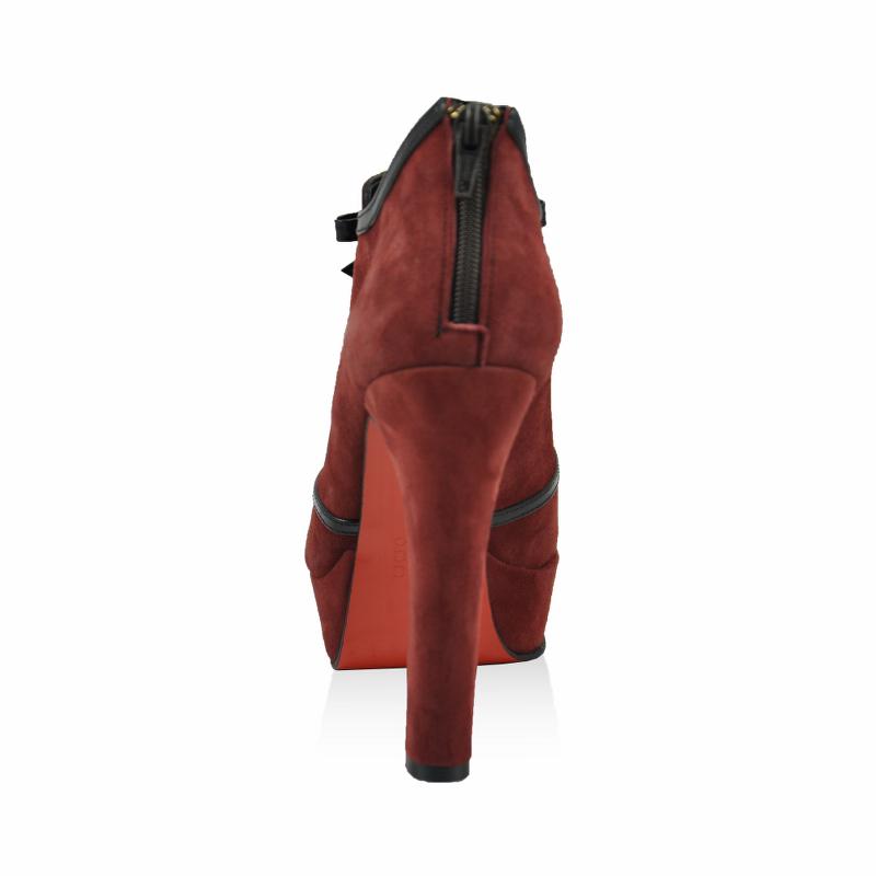 Bordo Süet Siyah Rugan Biyeli Önü Fiyonklu Bootie