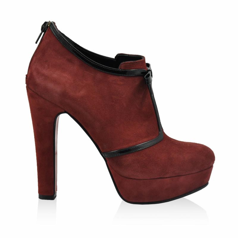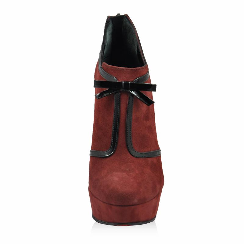 Bordo Süet Siyah Rugan Biyeli Önü Fiyonklu Bootie