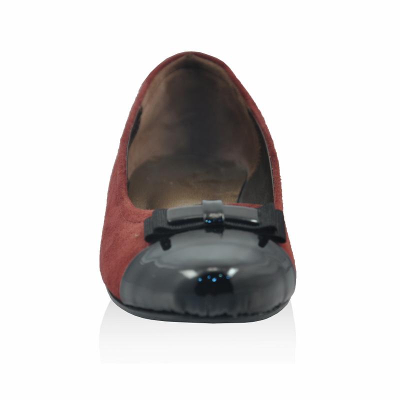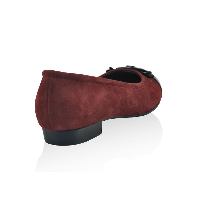 Bordo Süet & Siyah Rugan Grogren Fiyonklu Önü Maskaretli Babet