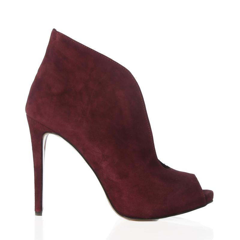 Bordo Süet U Kesim Burnu Açık Bootie(Bot-72)