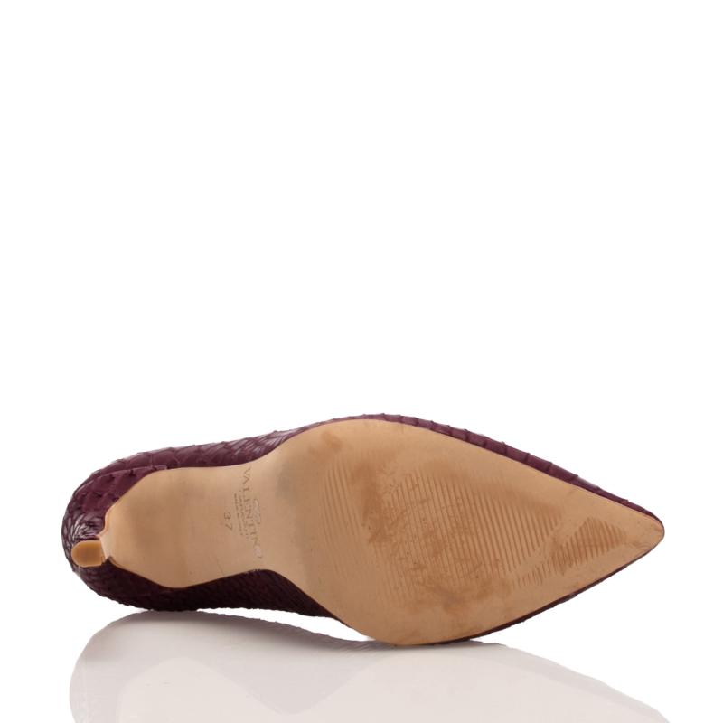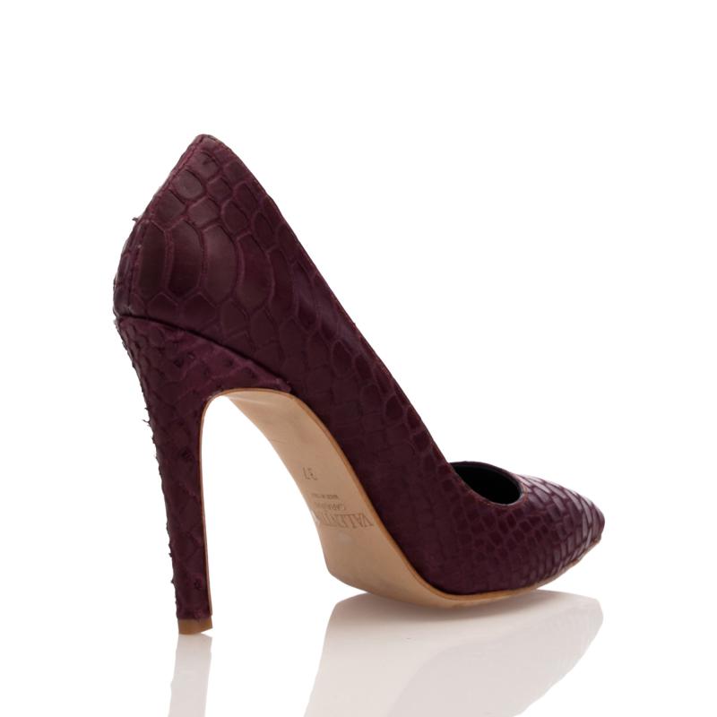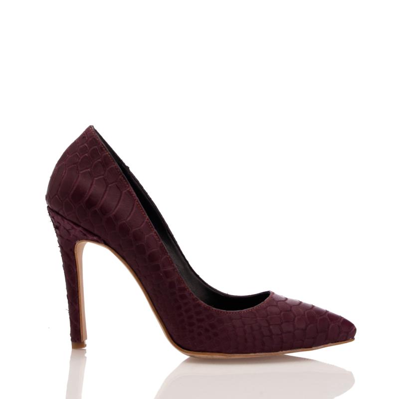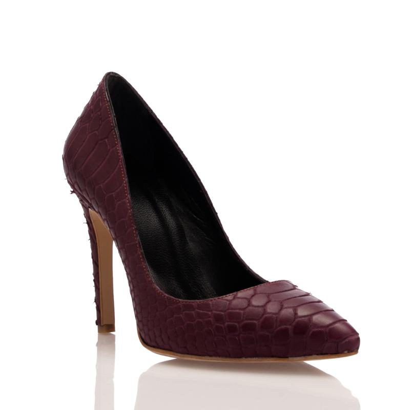 Bordo Yılan Baskılı Krokodil Deri Stiletto Ayakkabı(A-105)