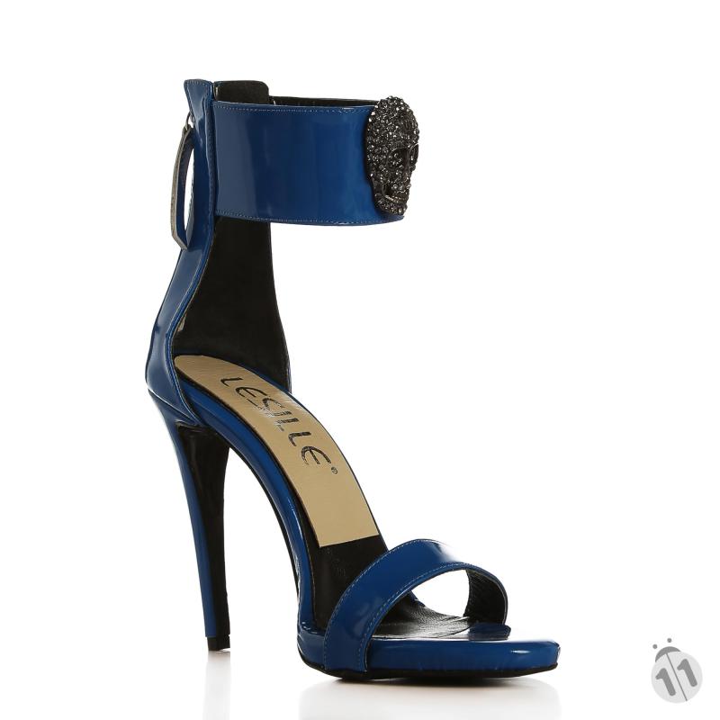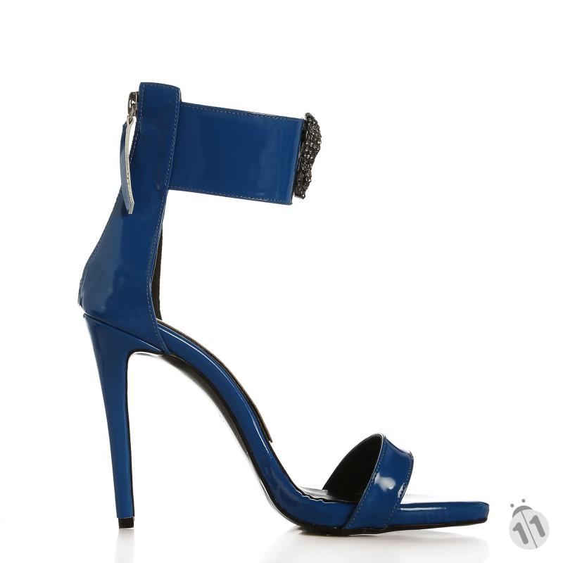 Çivit Mavisi Rugan Önü Kuru Kafa Tokalı & Arkadan Fermuarlı Ayakkabı(a-415)