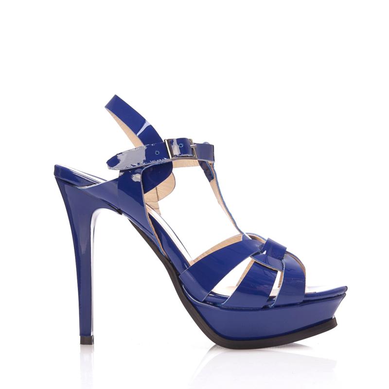 Çivit Mavisi Rugan Yandan Tokalı T Bantlı Ayakkabı(a-272)