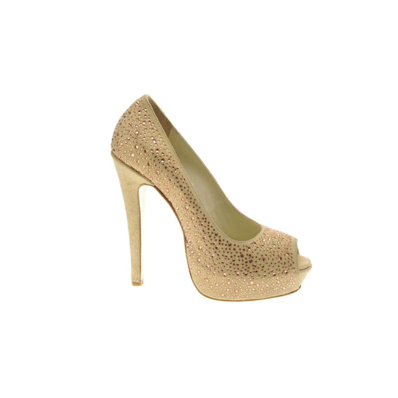 Dore Simli Süet Dore Taşlı Basic Burnu Açık Ayakkabı
