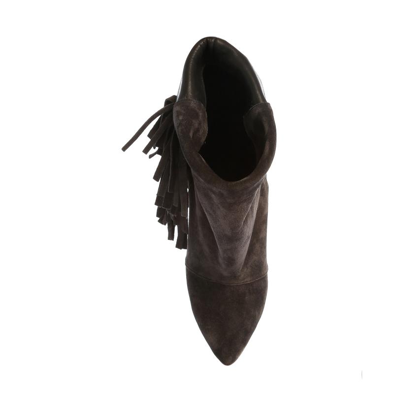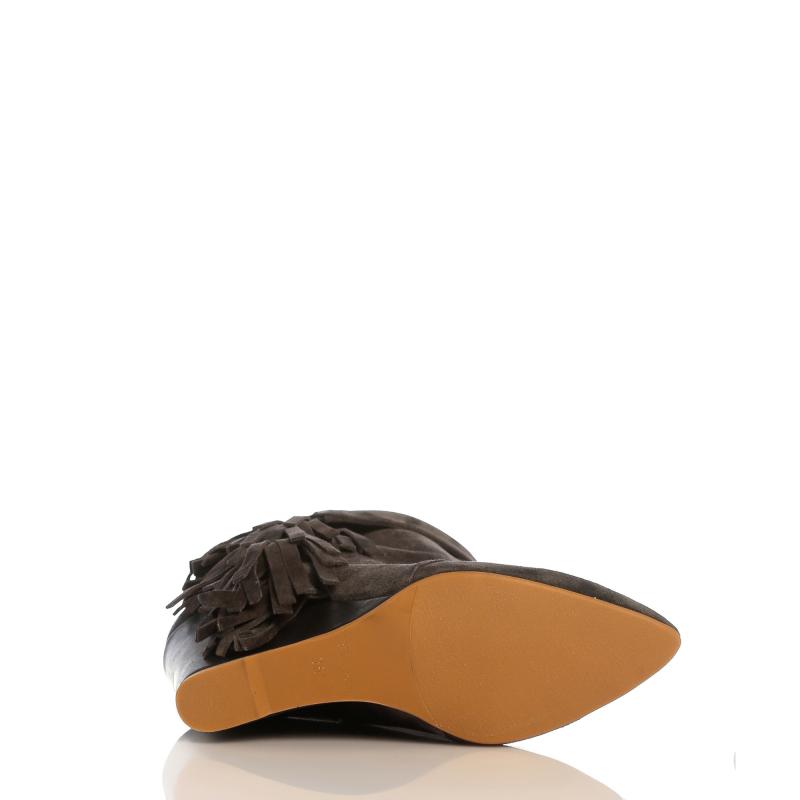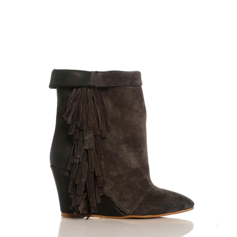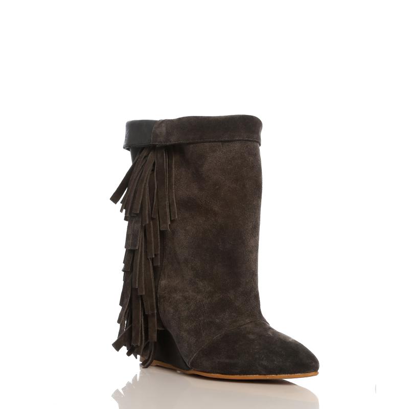 Füme Deri & Süet Yandan Püsküllü Dolgu Topuk Bot
