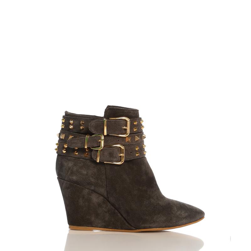 Füme Süet Yandan Üç Tokalı Pimli Dolgu Topuk Bot
