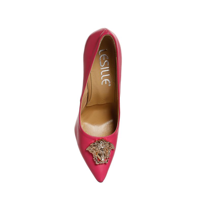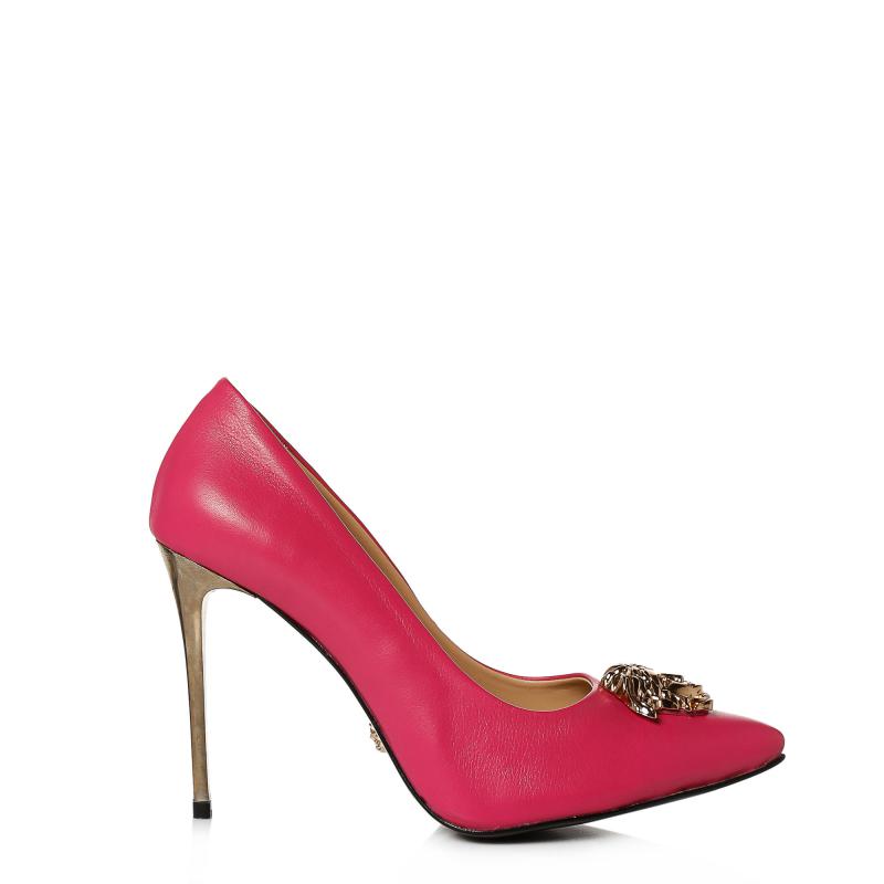 Fuşya Deri Medusa Tokalı Stiletto Ayakkabı(A-321)