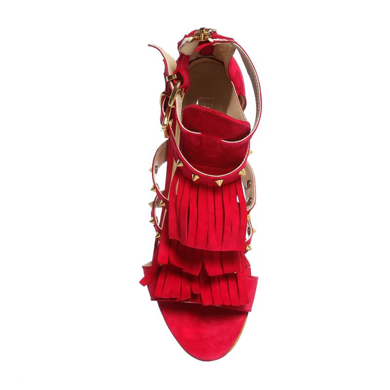 Fuşya Pembesi Süet Püsküllü Pimli Arkadan Fermuarlı Ayakkabı