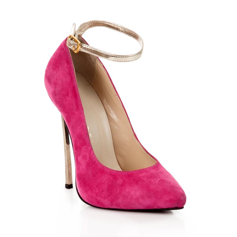 Fuşya Süet Bilekten Atkılı Çelik Topuk Sivri Burun Ayakkabı