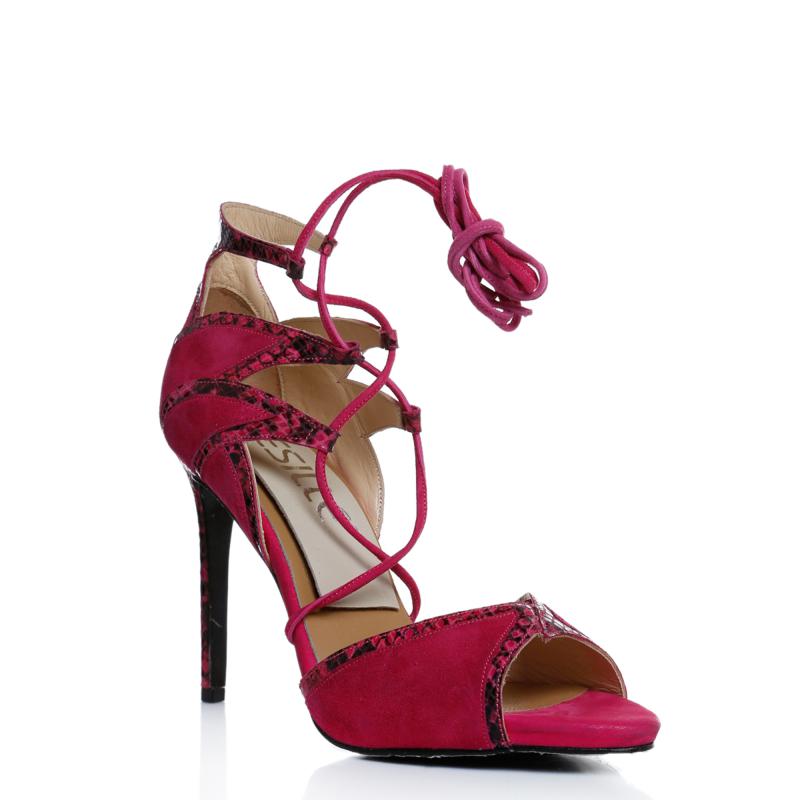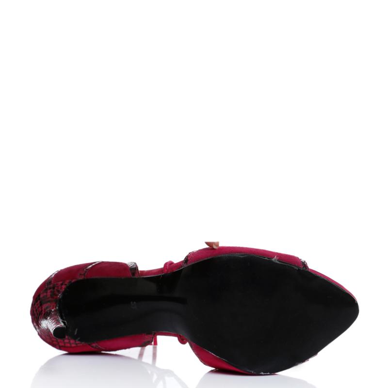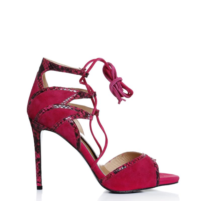 Fuşya Süet & Fuşya Yılan Baskılı Biye Bağcıklı Ayakkabı(r-1)