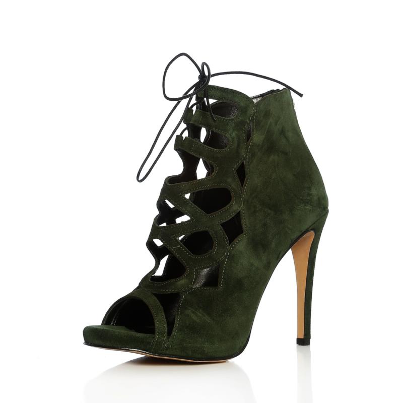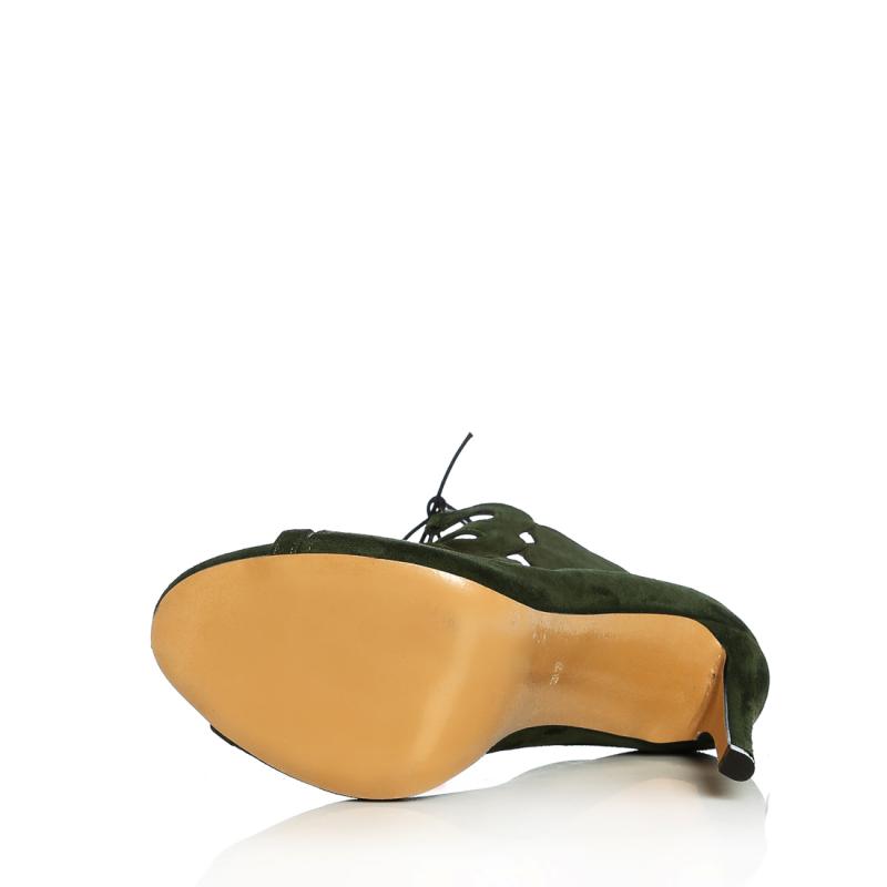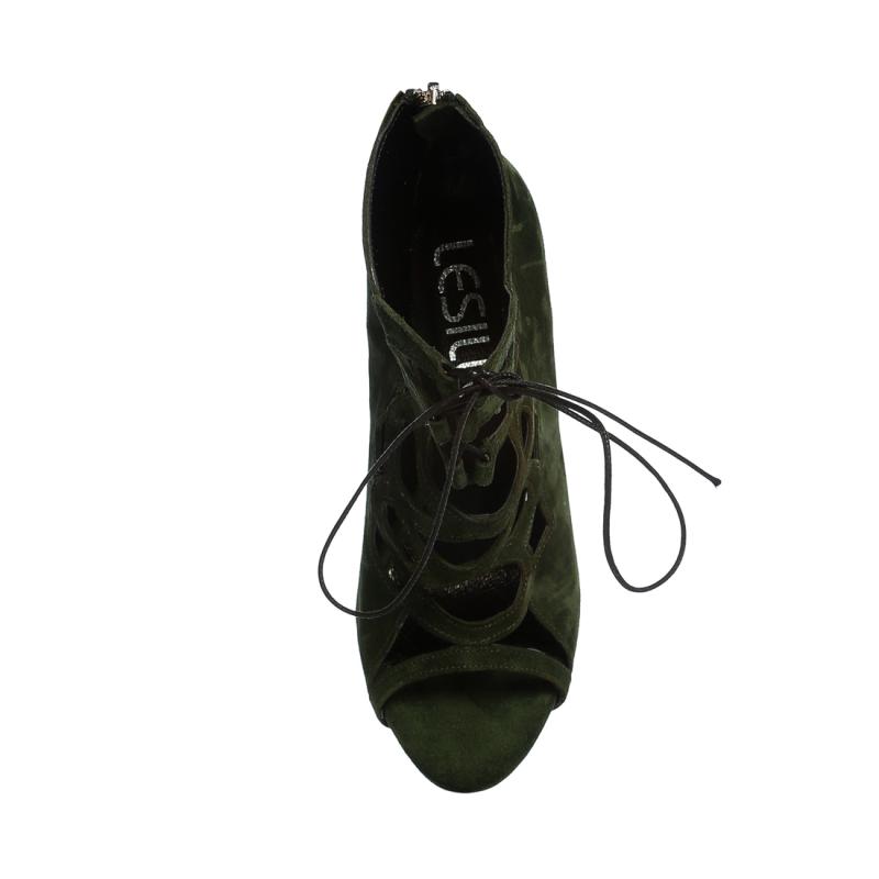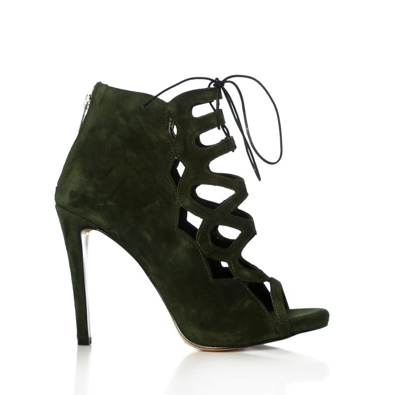 Haki Yeşili Süet Bağcıklı Acurlu Arkadan Fermuarlı Ayakkabı