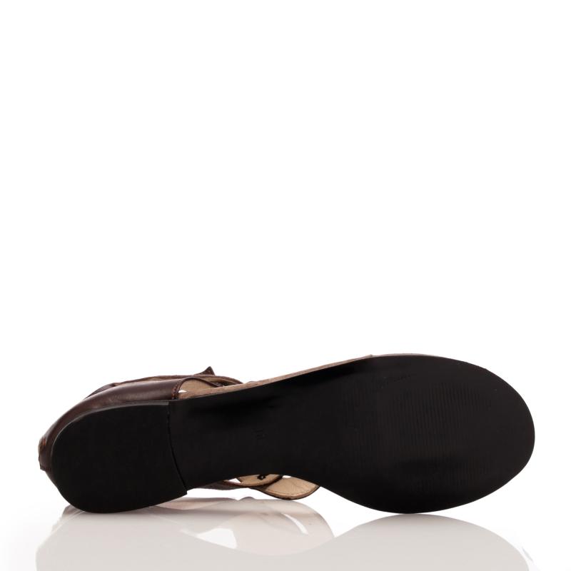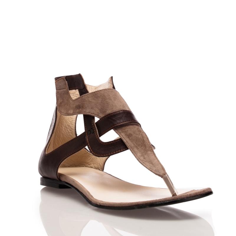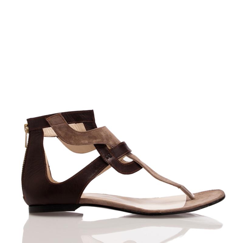 Kahverengi Deri & Vizon Süet Arkadan Fermuarlı Parmak arası sandalet