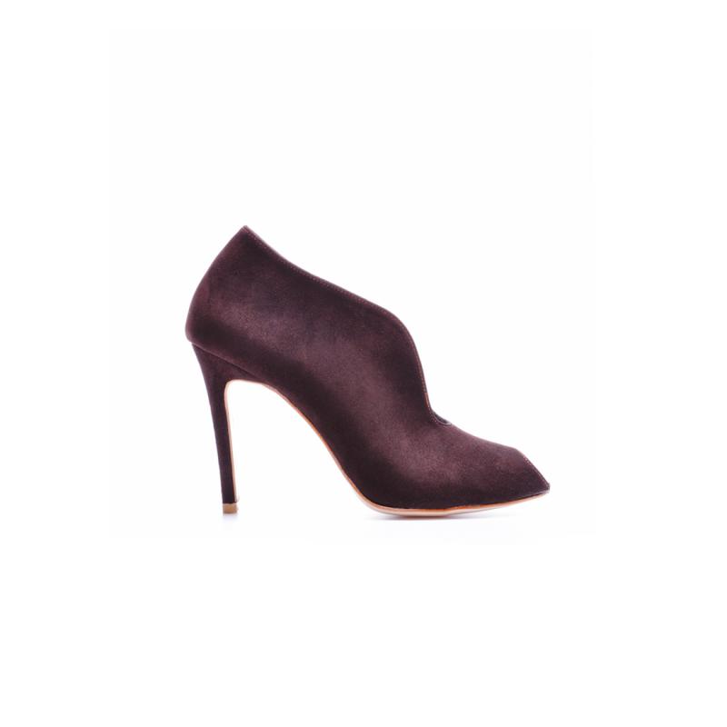 Kahverengi Süet U Kesim Burnu Açık Bootie(Bot-67)