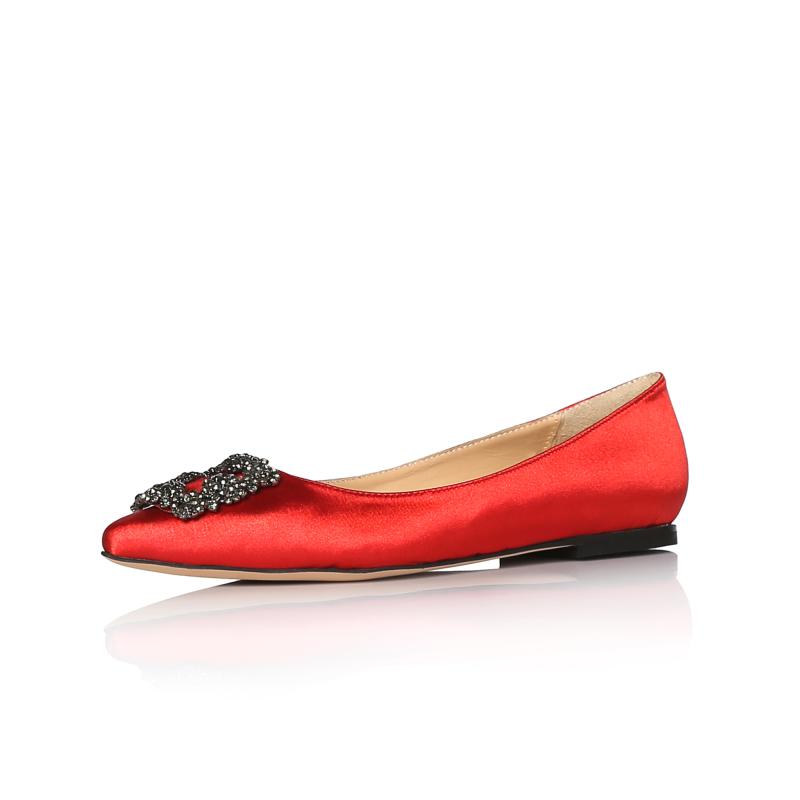 Kırmızı Kumaş Taşlı Tokalı Babet