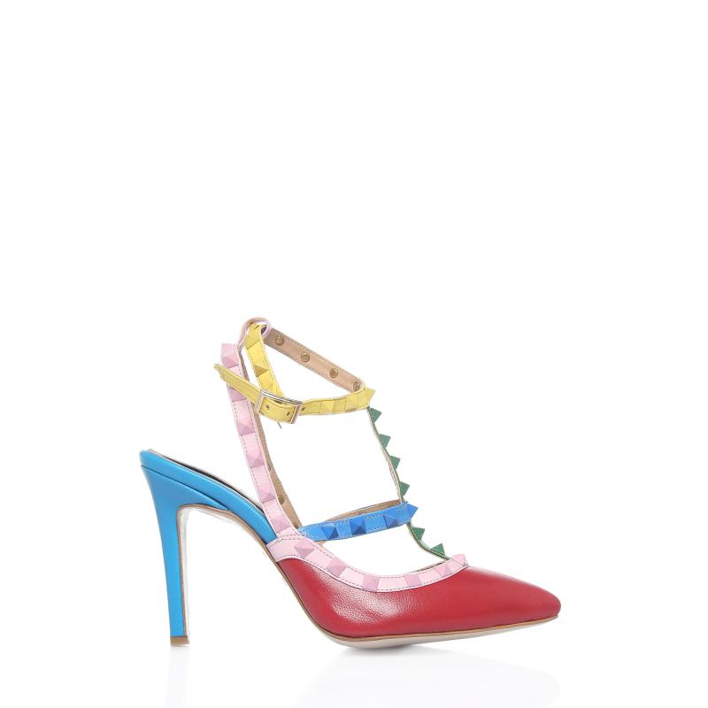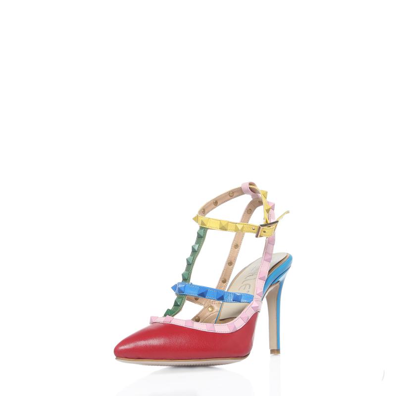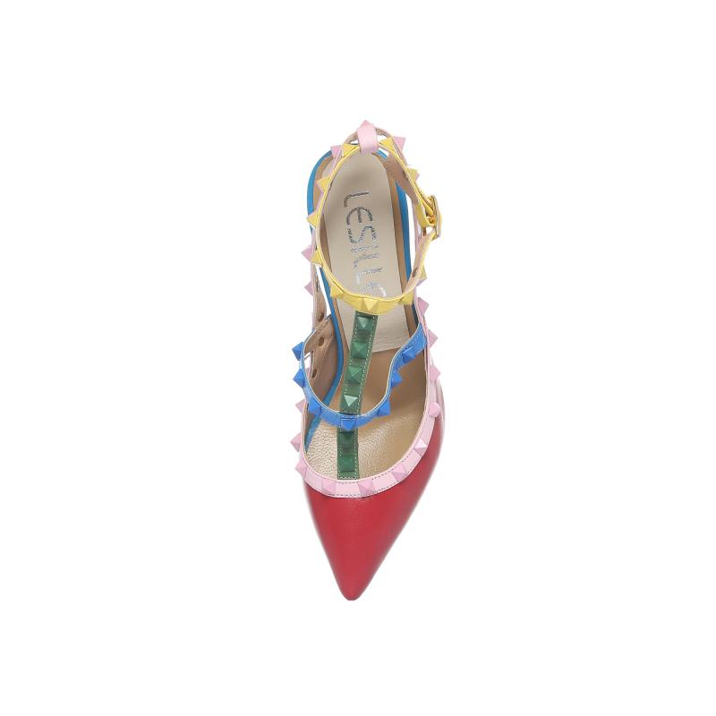 Kırmızı & Mavi & Sarı & Pudra & Yeşil Deri T Bantlı Pimli Ayakkabı