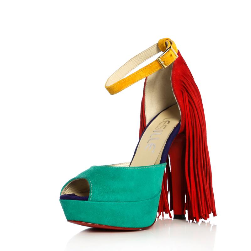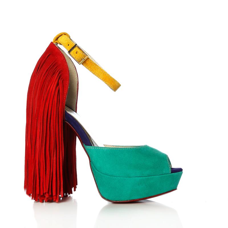 Kırmızı & Mint Yeşili & Saks Mor & Sarı Süet Arkası Püsküllü Ayakkabı