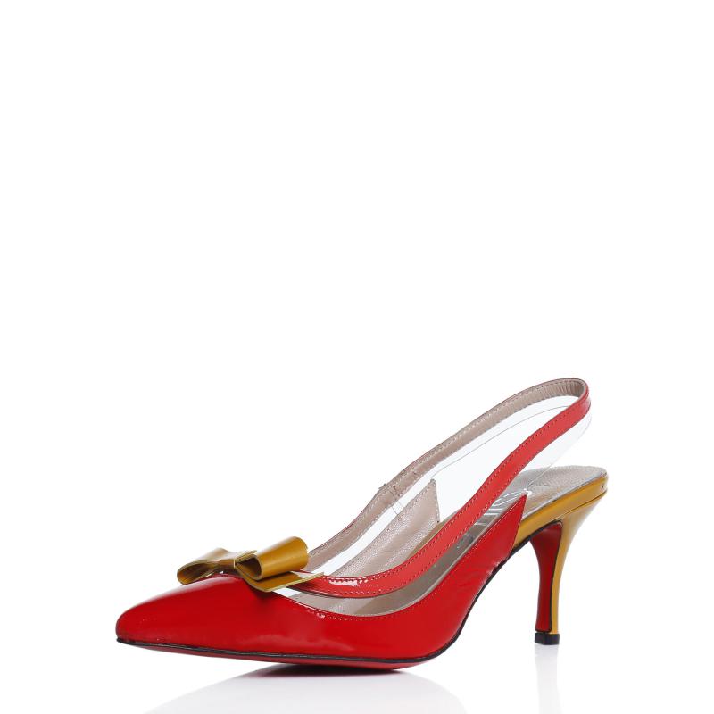Kırmızı & Narçiçeği & Sarı Rugan & Şeffaf Mıkalı Fiyonklu Arkası Açık Ayakkabı