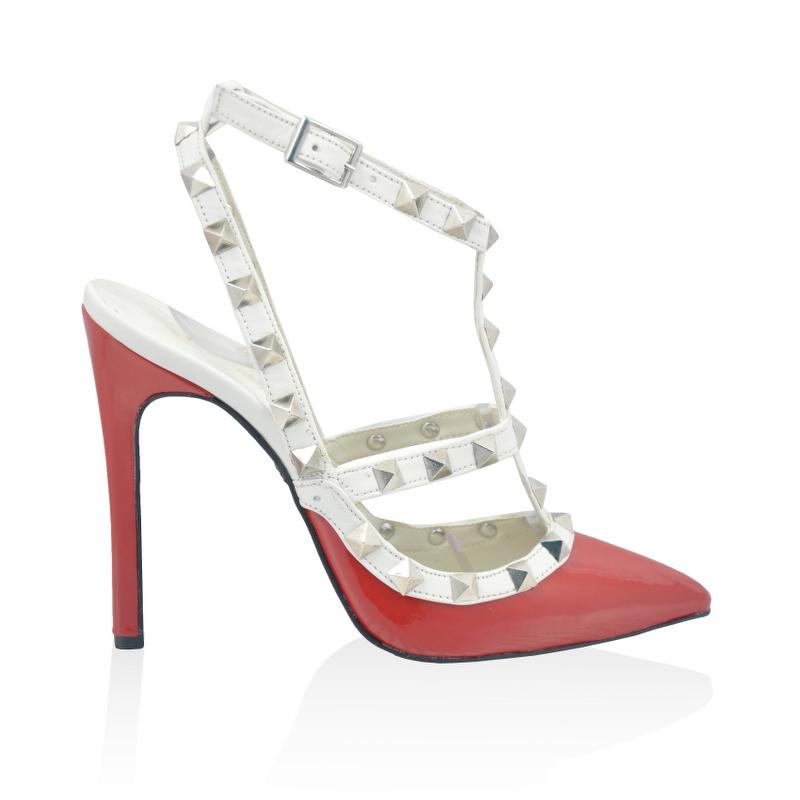 Kırmızı Rugan & Beyaz Deri T Bantlı Pimli Ayakkabı