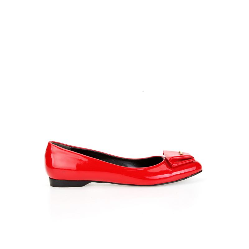 Kırmızı Rugan Fiyonklu Altı Kösele Babet