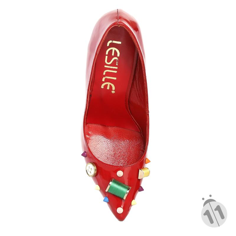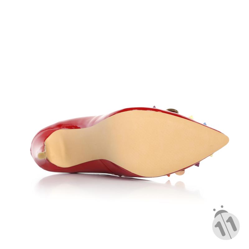 Kırmızı Rugan Pimli & Düğmeli & Makaralı Ayakkabı