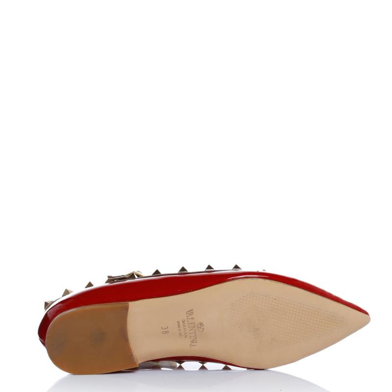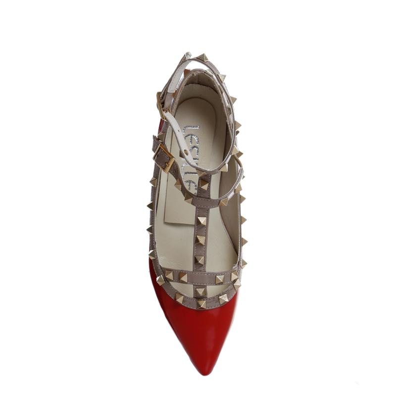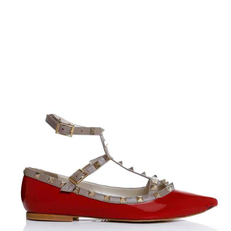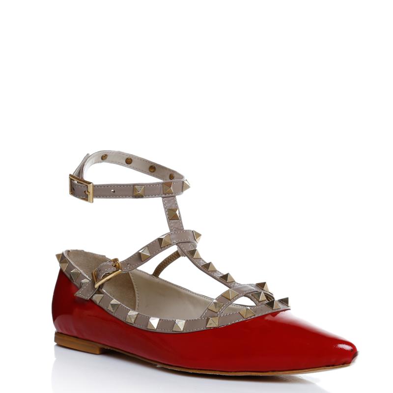 Kırmızı Rugan & Vizon Deri T Bantlı Pimli Babet