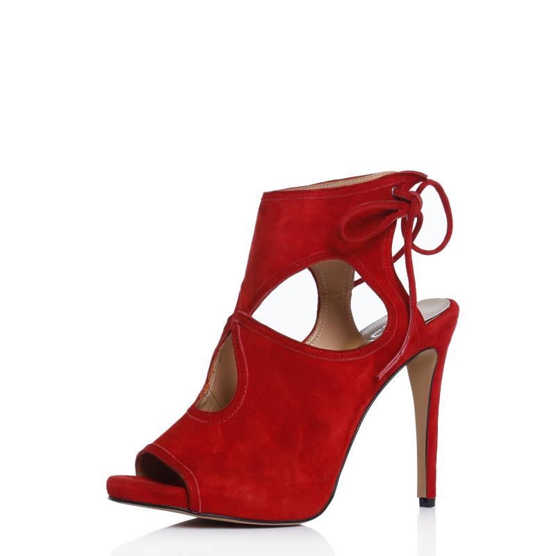 Kırmızı Süet Arkadan Bağcıklı Acurlu Ayakkabı(a-363)