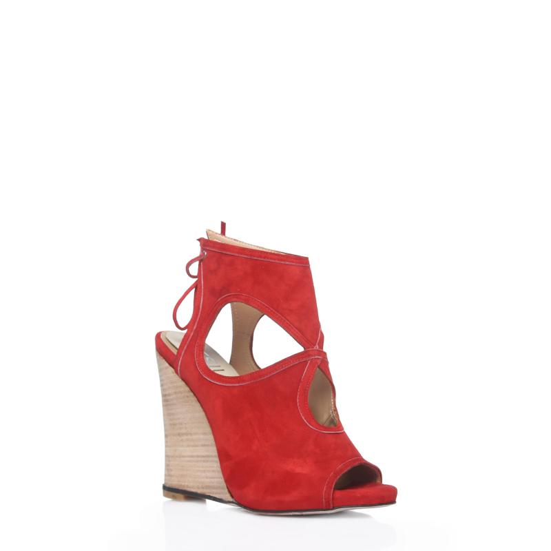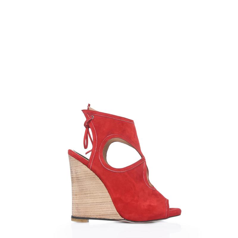 Kırmızı Süet Arkadan Biyeli Acurlu Dolgu Topuklu Ayakkabı(a-363d)