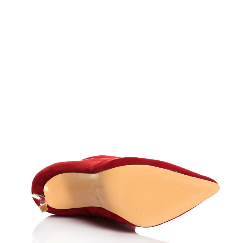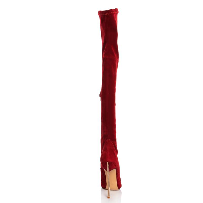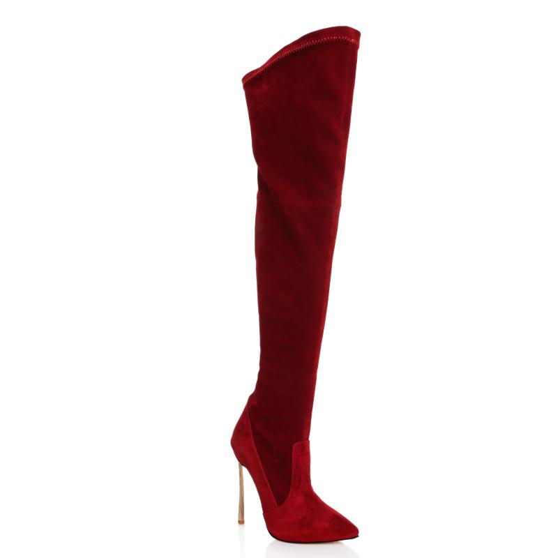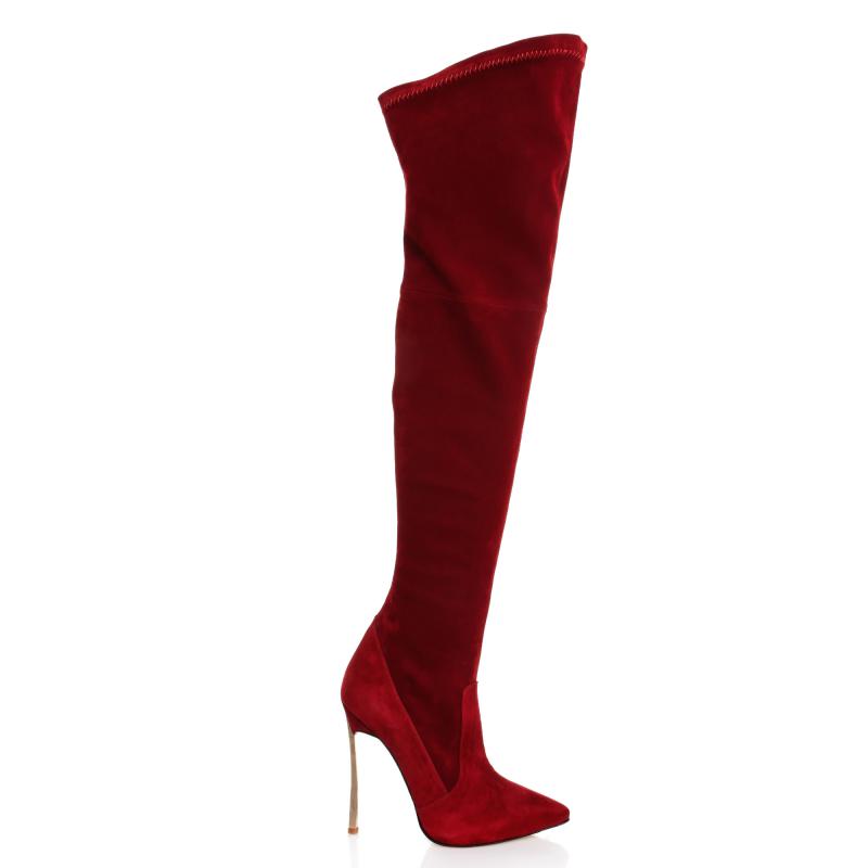Kırmızı Süet Stretch Dizüstü Çelik Topuklu Çizme(c-45)