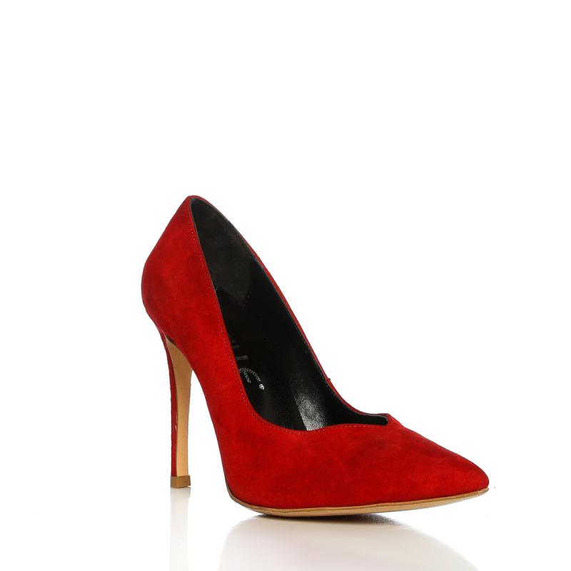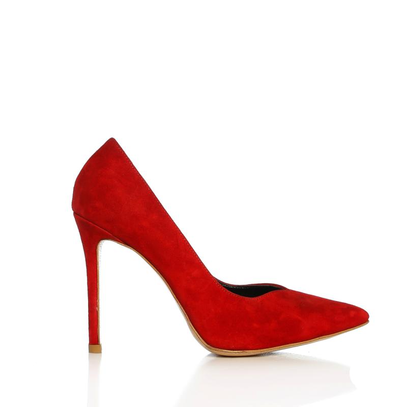 Kırmızı Süet V Kesim Stiletto Ayakkabı(A-105)