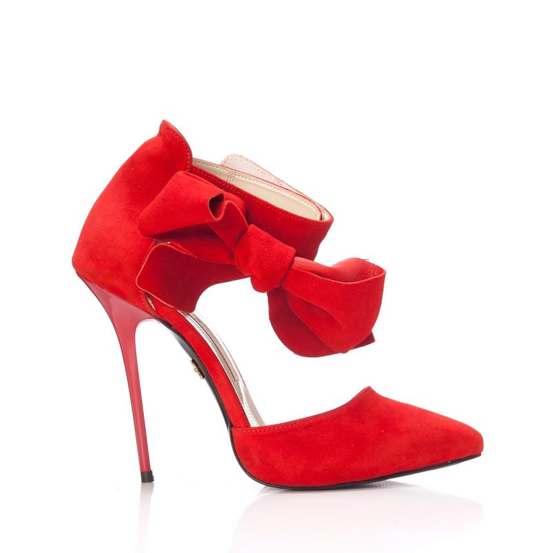 Kırmızı Süet Yandan Kurdele Fiyonklu Mabeyn Ayakkabı