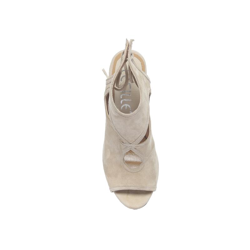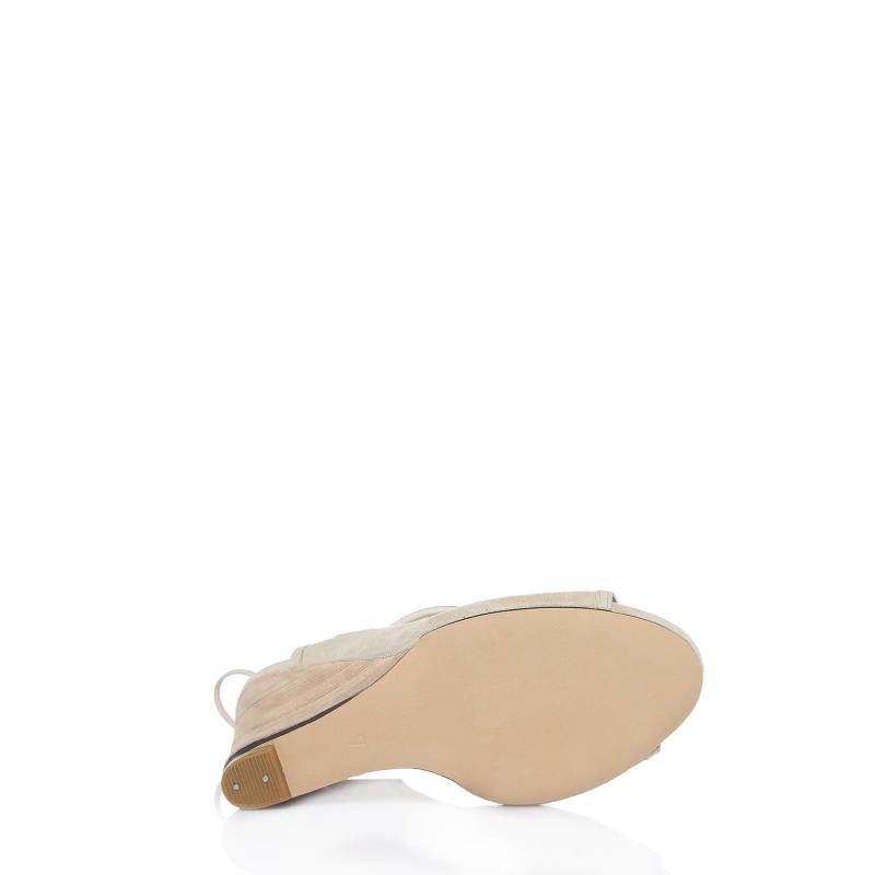 Krem Süet Arkadan Biyeli Acurlu Dolgu Topuklu Ayakkabı(a-363d)
