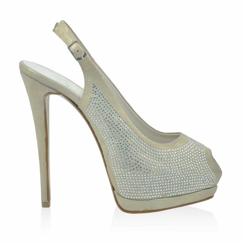 Krem Süet Yandan Tokalı Taşlı Ayakkabı