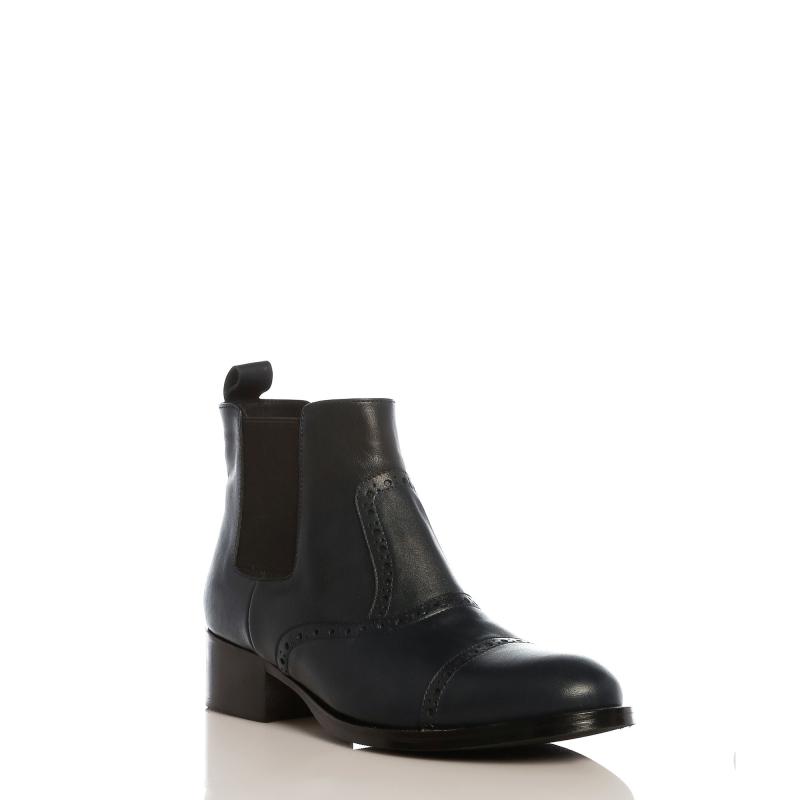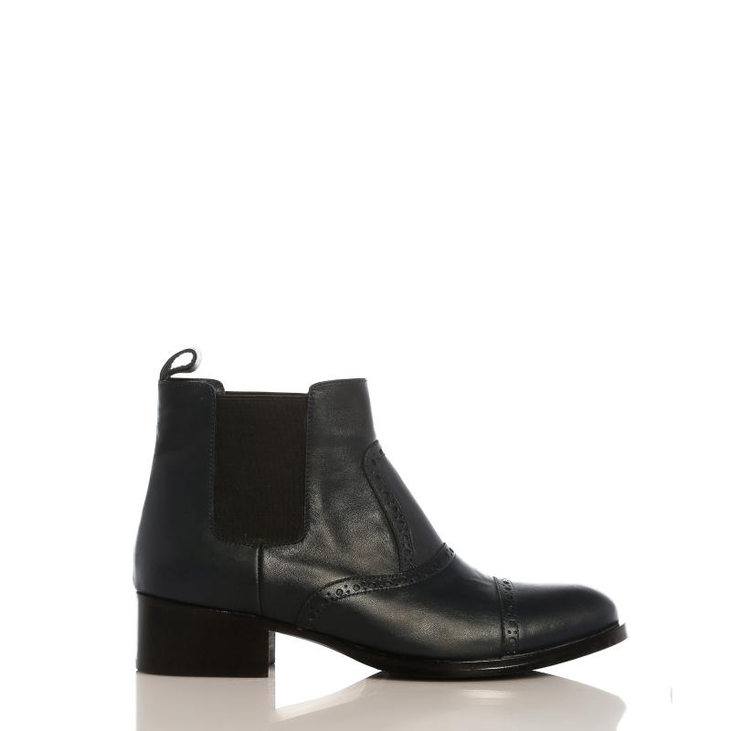 Lacivert Deri Yandan Lastikli Arka Köprülü Bot