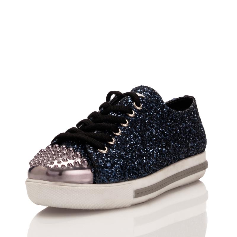 Lacivert Simli Önü Gümüş Droglu Maskeretli Sneaker Ayakkabı