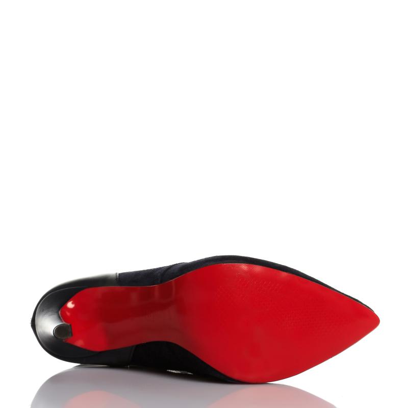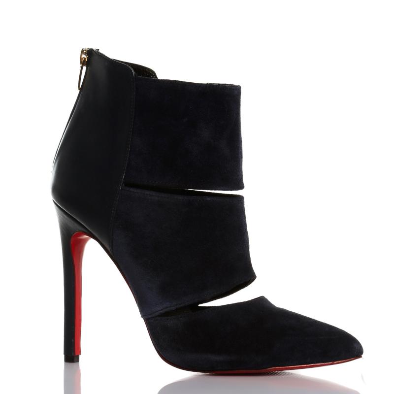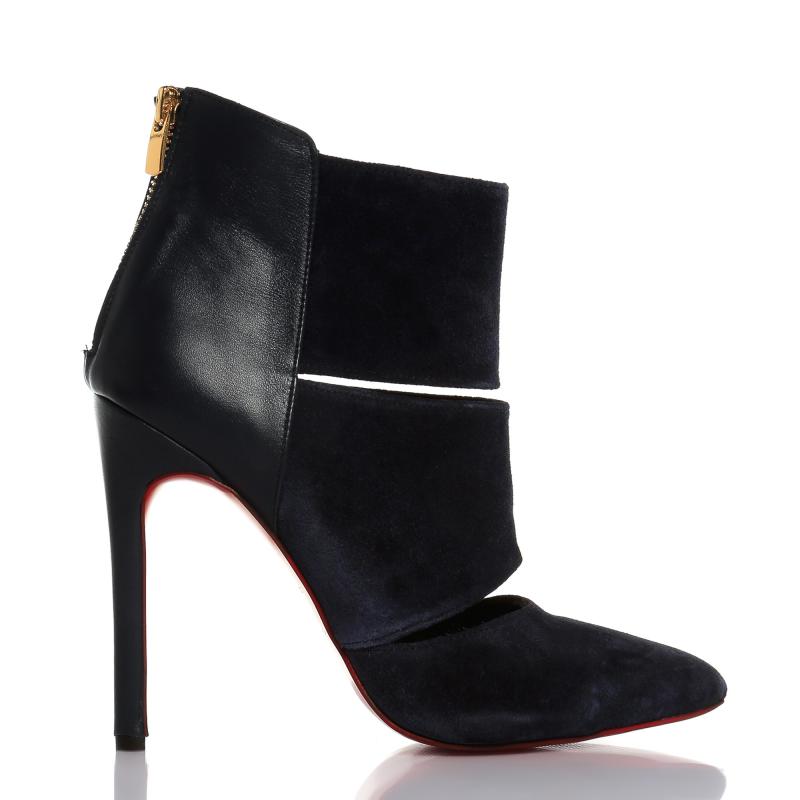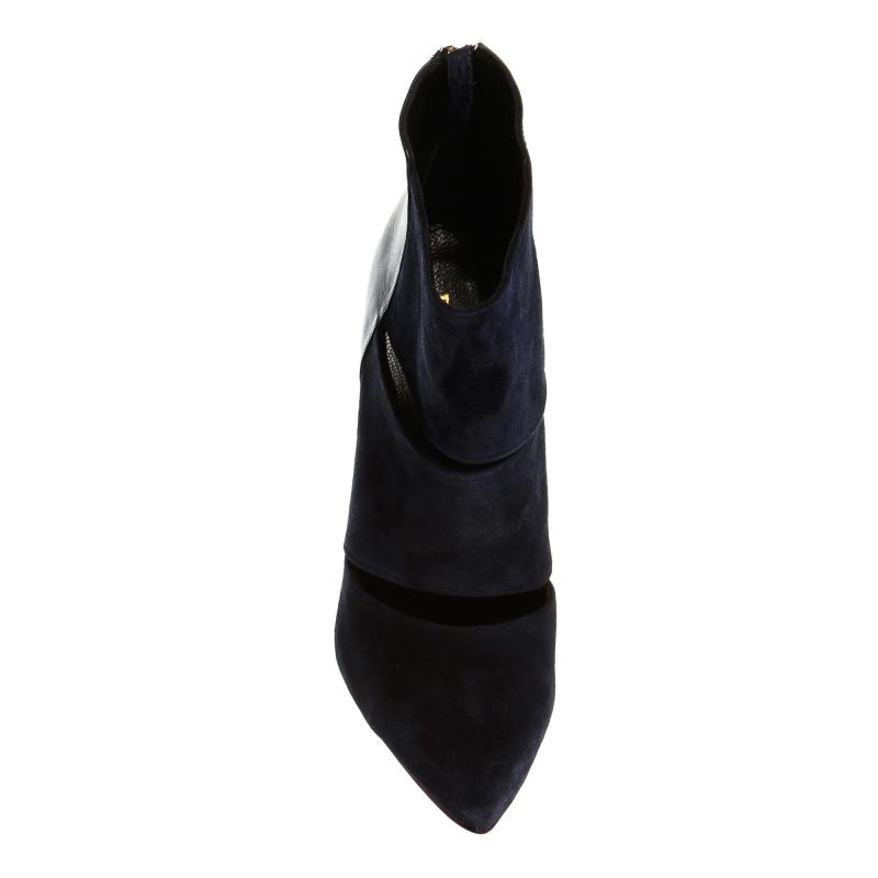Lacivert Süet & Deri Arkadan Fermuarlı Acurlu Bot